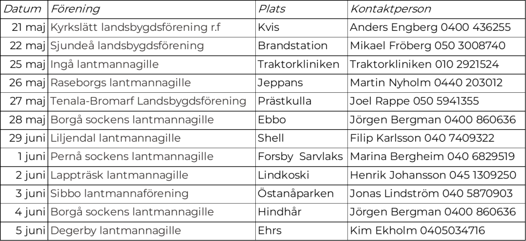 Anmäl dig till kontaktpersonen på orten! Testerna ordnas enligt följande: